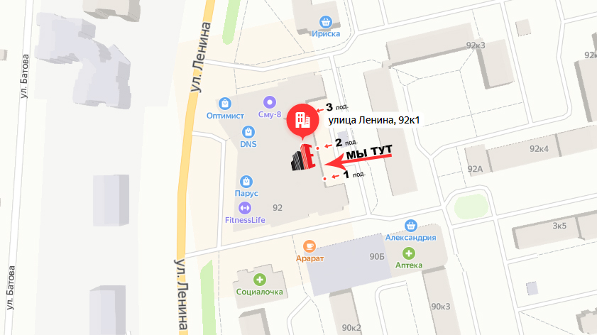 Адрес: ул. Ленина, 92, корп. 1, Железногорск (ТД Парус, вход со стороны двора между жилыми подъездами 1 и 2, офис 1-5)